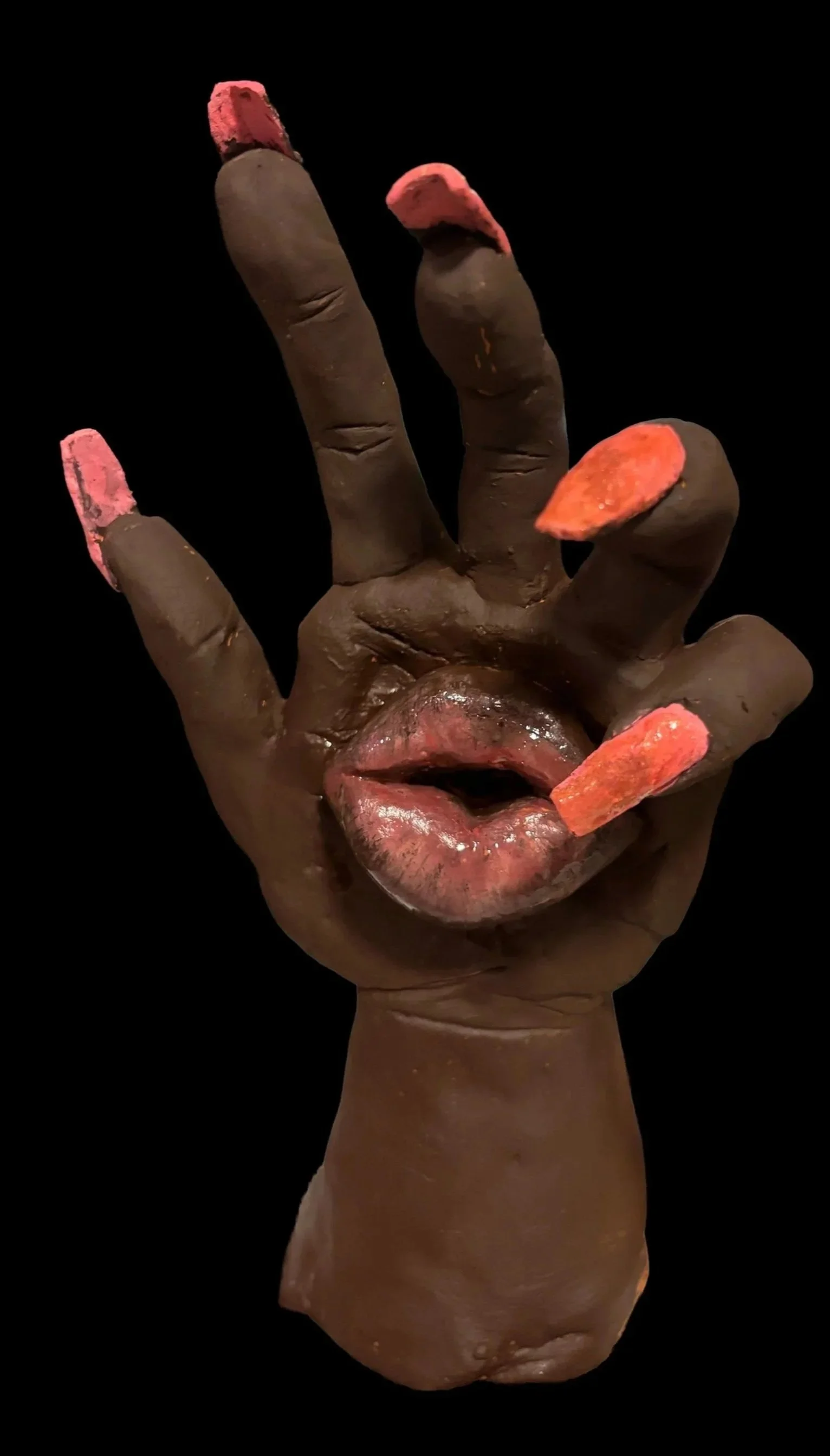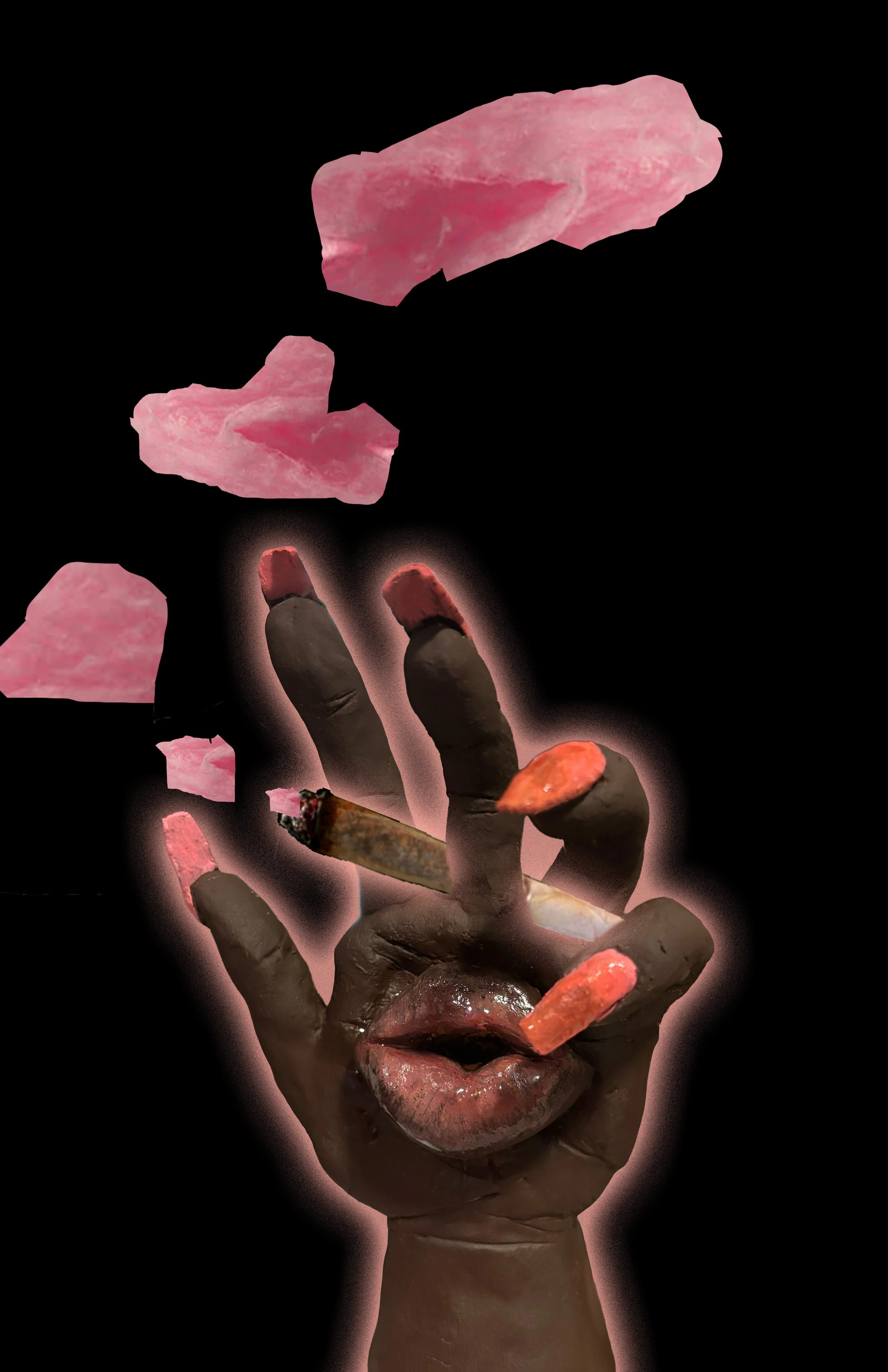 After finalizing the design direction, I switched to clay and sculpted a life-sized hand inspired by a “talk to the hand” gesture. With acrylic nails and a photo of a burnt-out blunt, the piece gives the hand a feminine personality while paying homage to Black women and everyday comforts often labeled as “ghetto.” The work reclaims the term as a positive, self-defined symbol of identity and pride.